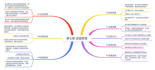 健全监管体制,强化监督管理。包括安全管理、收费管理、收费使用、财务制度、经费管理、信息公示、督导问责、质量监测等8条内容。