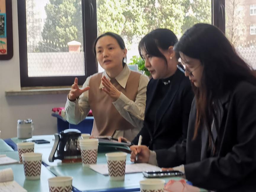 小学教学发展部于冬霞主任,围绕幼儿园教师提出的问题与困惑,组织附校一年级教师集体开展前期的分析及研讨。