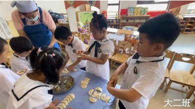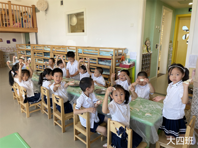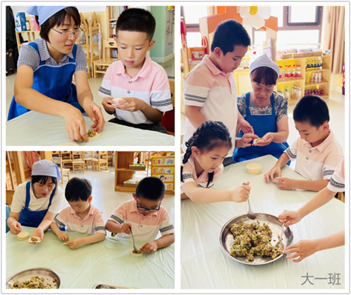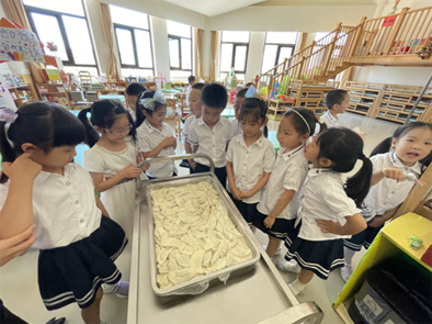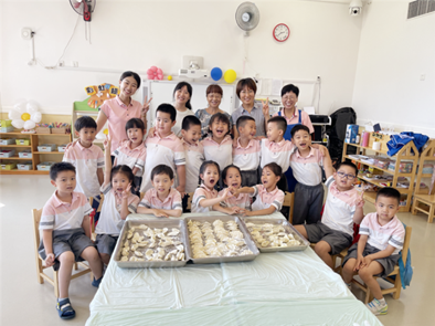 拿皮、放馅、对折、捏口……灵巧的小手包出了一个个毕业饺子,象征着团圆和美满。吃到自己亲手包的饺子,用舌尖留住童年的味道!