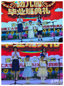 致辞的小朋友用甜美的声音讲述了四年幼儿园生活的美好回忆,表达了对幼儿园的依依惜别和对老师们的爱。