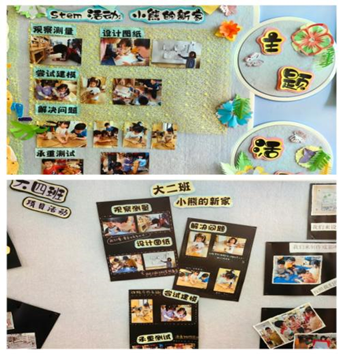 从“小熊的新家”活动开始了STEM的探索之旅。观察测量、设计图纸,到回家收集材料、尝试建模,幼儿的空间建构能力有了明显的提升。通过stem这种开放性、低结构的探究活动,老师发现:幼儿具有无限的想象力和创造力。