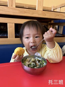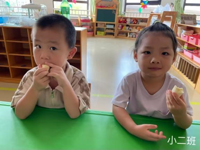 宝贝在老师的引导下,有序地如厕洗手,品尝美味的水果,好甜呀!