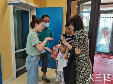 午餐结束,爸爸妈妈也迫不及待地来接宝贝们啦,“老师,我明天还来幼儿园”“老师再见!”恭喜宝贝迈出了自己成长中最重要的一步。