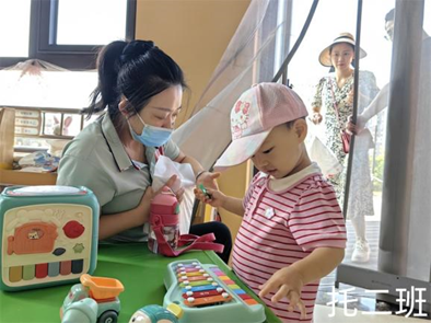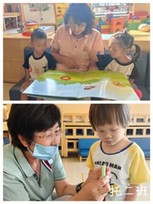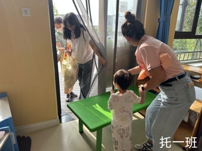 离开家人的呵护,宝贝有的会哭闹、有的会抗拒,有的在摆弄新奇的玩具、有的在认真翻阅绘本故事,还有的在跟着老师做有趣的游戏、说好玩的手指谣。