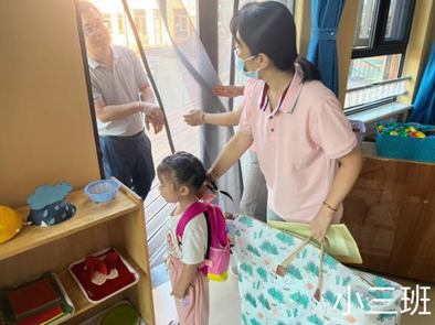 9月4日清晨,随着老师们一声声:“宝贝,欢迎你;宝贝,早上好!”。宝贝在家长的陪同下进入班级,开启了全新的幼儿园生活。