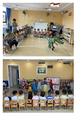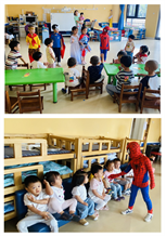 考虑新入园的弟弟妹妹们上下楼梯还不是很熟练,大班的哥哥姐姐们走进班级把精彩的节目带给他们。