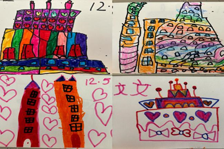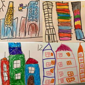 游戏前,每一名幼儿都画出了自己设计的“摩天大楼”游戏计划。