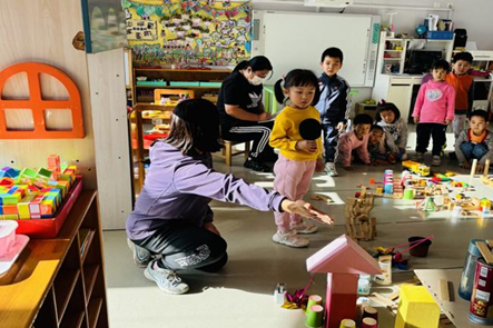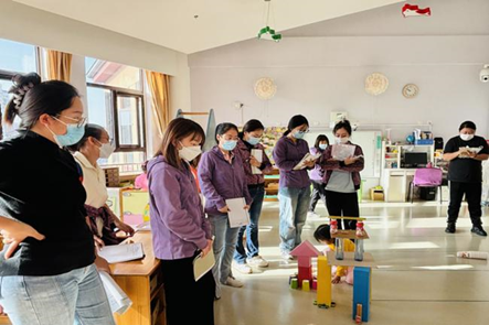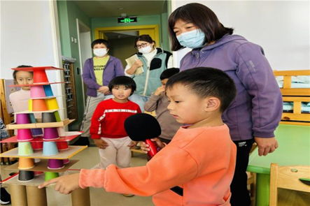 12月6日上午,在张晶助理的带领下,幼儿园青年教师观摩了中一班段晓红老师组织的班级建构游戏“摩天大楼”。段老师幽默、充满智慧的教学风格,让大家钦佩不已。