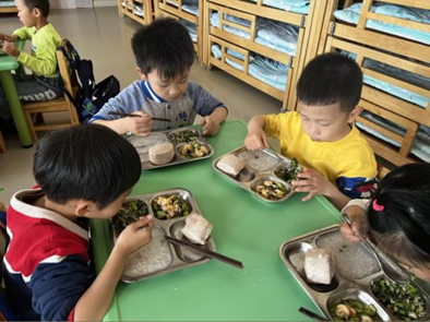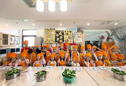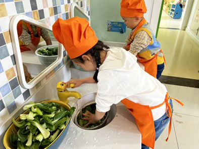 接下来到了洗菜环节。孩子撸起小袖子,拿着自己择好的菜来到水池旁,认真地清洗着每一片蔬菜,他们的脸上洋溢着满足和自豪的笑容。