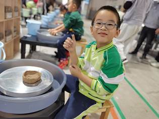 “我记得新年活动的时候老师说捏泥塑的时候要注意力度,这样做出来的杯子才不会变形。”大家都专注地将之前学到的技巧运用到陶瓷制作中,小小的脑袋里不断迸发出创意。