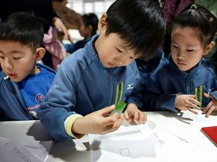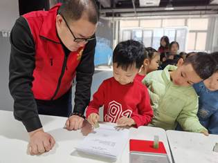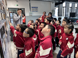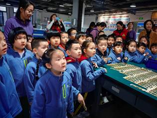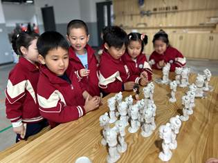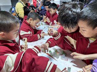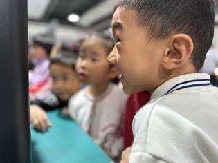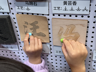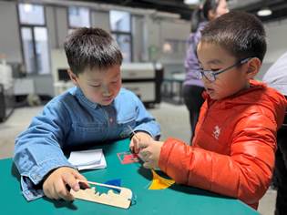 看着机器人熟练地刻出印章,一旁的派派眼睛一亮,兴奋地说:“我们新年玩的活字印刷和拓印好像啊,都是刻字和图案,但是机器人刻得又快又准!”其他孩子纷纷点头,对机器人的精准操作赞叹不已。