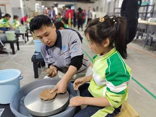 走进陶瓷艺术区,精美的陶瓷艺术品散发着独特的魅力,吸引着孩子们的目光。带队老师耐心地演示着捏泥杯的方法,孩子们都聚精会神地看着,小手早已按捺不住。