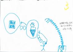 活动结束回到幼儿园,孩子们迫不及待地拿起画笔和小伙伴分享自己的探秘经历。