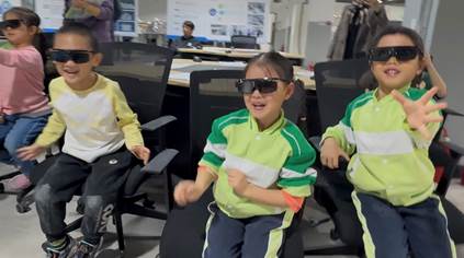 在VR体验区,孩子们戴上设备的瞬间,就被眼前的虚拟世界震撼。 “我在宇宙里啦,好多星星!” “太酷啦,感觉伸手就能摸到”孩子们兴奋大喊,双手不停挥舞想要触碰那些星辰。