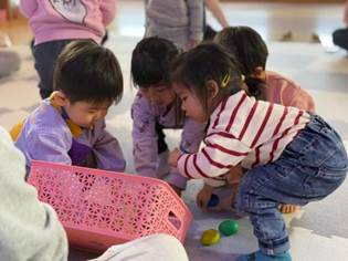 活动伊始,老师们手持小鸡玩偶热情开场。萌态可掬的小鸡率先“自报家门”,随后化身“社交小导师”,鼓励宝贝们勇敢开口。萌娃们稚嫩的话语,萌化众人。欢声笑语中,每个宝贝都在这场初遇里,触摸到了人际交往的温暖与奇妙。
