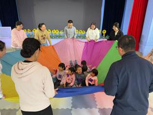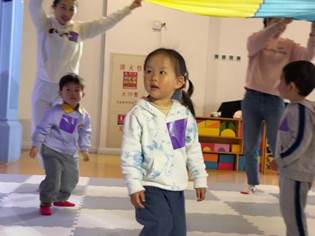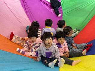 彩虹伞被老师高高举起,如同绽放的巨大花朵,释放出梦幻般的光芒。孩子们欢快地踩在色块之上蹦跳,依照指令化作灵动的小陀螺。拉圈搭起的帐篷下,爆发出阵阵欢声笑语,快乐似繁星点点,闪烁在这片童趣天地,轻柔地滋养着每一个孩子的成长。