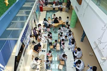 其他各单位工会为幼儿园孩子们带来精彩纷呈的科技体验活动。生物工程学院打造“微观探索交互站”,孩子们用显微镜观察微观世界,通过实验认识细菌;外国语学院带领孩子们制作创意超轻黏土粽子。机关工会的化学科普实验以绚丽现象吸引众人,材料科学与工程学院借助显微镜展示金属微观结构,环境学院开展垃圾分类科普游戏。此外,医学部、化工学院、建设工程学院、力学与航空航天学院等工会也带来特色体验,让孩子们在趣味互动中感受科学魅力,激发探索热情。
