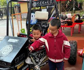 机械工程学院工会携手凌魂车队,为孩子们带来了一场别开生面的“探秘机械赛车”活动,将前沿科技的种子播撒在孩子们心中。活动现场,炫酷的赛车立即吸引住了孩子们的目光。车队成员耐心地向孩子们讲解赛车的机械构造和动力原理,从齿轮的咬合到发动机的运转,生动形象地讲解让复杂的机械知识变得通俗易懂。小朋友们围在赛车旁,好奇地观察着每一个零件,不时提出天真有趣的问题。