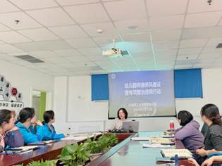 针对保教工作实际,园长与教职员工集体谈话,围绕师德整治专项行动内容,逐条强调幼儿园师德行为规范的落实要点。