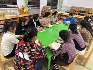 各教研组教师分组,针对“一日生活中有哪些容易被忽略的师德风险点和专业保教方法”“如何坚守底线,营造清爽家园关系”等问题进行探讨。