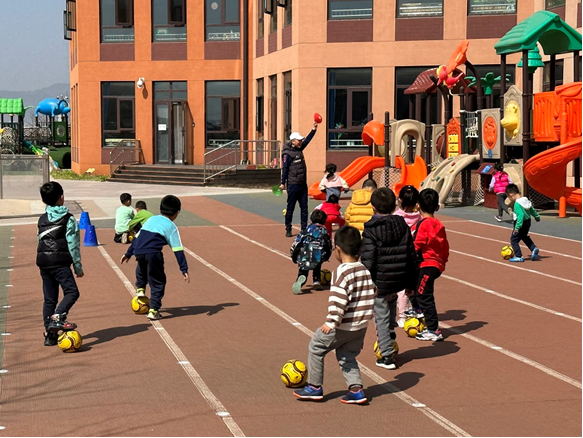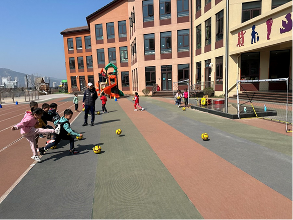 教师在经过教练的培训后,会经常在户外活动时间带领小朋友们练习,并组织各种足球游戏,如赶小猪、定点射门赛……