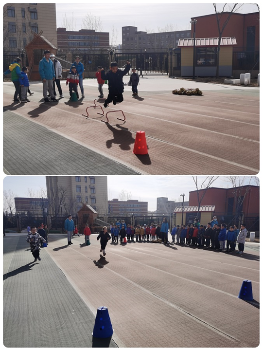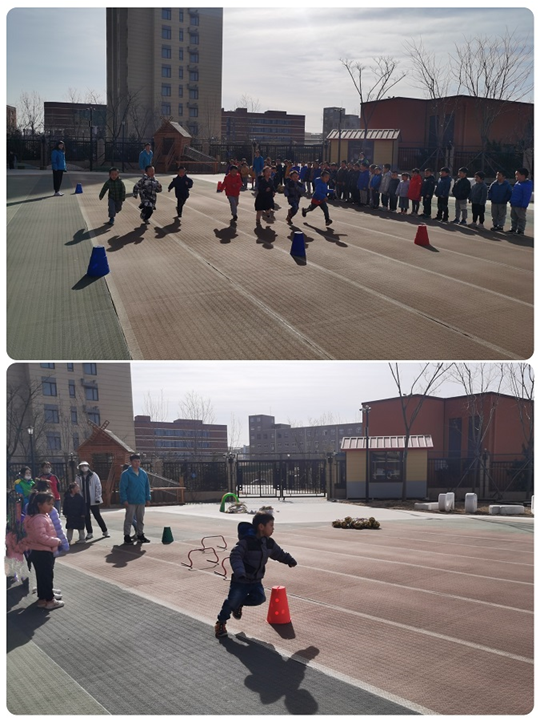 3月16日上午,幼儿园开展足球海选活动,测试的项目有蛇形跑、跨栏跑和折返跑。幼儿园足球负责人赫欣助理和足球专干马少洋老师,为小朋友示范讲解测试的规则。