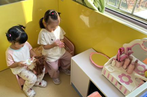 解读:我要在新教室玩娃娃家,照顾小宝宝。