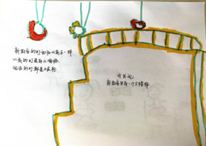 解读:早上妈妈送我从大门进来,现在要走更多的楼梯来到三楼的新教室,老师在教室门口等着我。