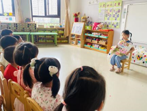 解读:好喜欢新班级的图书区,我们可以用手偶讲故事呢!
