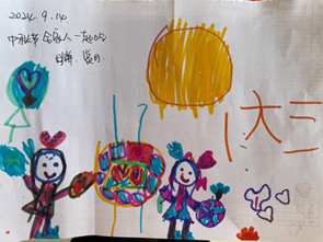 幼儿B: 中秋节会有许多好吃的,全家一起吃中秋宴。