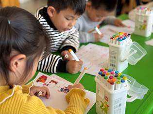 小玥:“这些陶瓷哪吒好可爱,它们的颜色好鲜艳,是怎么画上去的呀?”