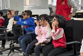 在VR体验区,孩子们戴上设备的瞬间,就被眼前的虚拟世界震撼。 “我在宇宙里啦,好多星星!” “太酷啦,感觉伸手就能摸到”孩子们兴奋大喊,双手不停挥舞想要触碰那些星辰。
