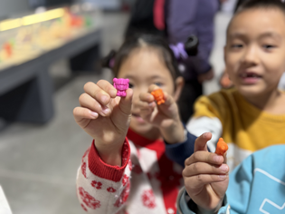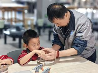 看着机器人熟练地刻出印章,一旁的派派眼睛一亮,兴奋地说:“我们新年玩的活字印刷和拓印好像啊,都是刻字和图案,但是机器人刻得又快又准!”其他孩子纷纷点头,对机器人的精准操作赞叹不已。
