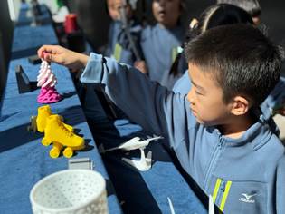 随着3D打印作品逐渐成型,精细的纹理和独特的造型让孩子们惊叹连连。“太神奇啦!这简直就是魔法机器,我以后也要用它做哪吒!” 嘎嘎兴奋地跳了起来说。