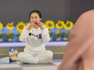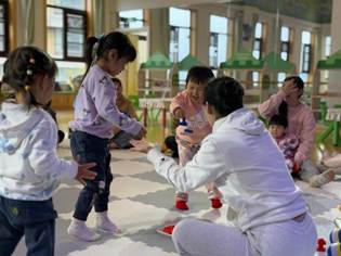 音乐响起,歌曲《快乐的黑母鸡》将现场气氛推向高潮。宝贝们手握沙响蛋,瞬间化身成一个个活力四射的小歌手和小舞者,沉浸在音乐带来的欢乐中,尽情享受着表演带来的快乐。