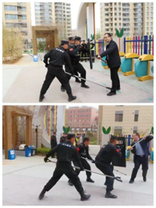 演练前后,学校保卫处胡科长为教师和保安进行安全培训,教大家正确使用防暴器材,并对此次演练进行分工部署,明确各部门职责,制定演练步骤,清楚疏散路线及演练要求。