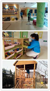 幼儿园的厨房、专项活动室和户外大型玩具都有专人进行负责清洗和消毒,让孩子们吃得安全,玩得安心。