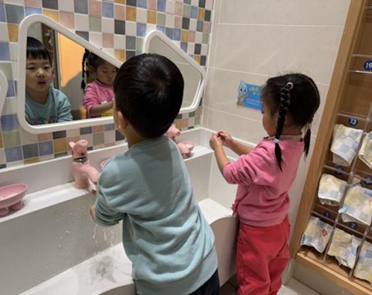 • 教宝贝用七步洗手法,用肥皂和清水洗洗小手。