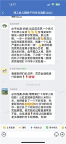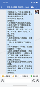 幼儿的科学教育是科学启蒙教育,其教育的核心在于保护与激发幼儿的好奇心和探索欲。幼儿的成长离不开家长及教师的陪伴,家长参与的亲子科学活动更具有培养意义和价值。因此,理工幼儿园于2018年建立亲子科学交流群,至今已近五年。这五年里,教师共分享科学实验108个,孩子独立讲解科学实验831次,教师专业评价1600余条,受益家庭近700个。每周二教师都会在群中分享一个精挑细选、亲自录制的科学游戏视频,并整理成文字,便于家长指导孩子积极参与游戏。