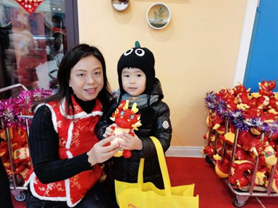 12月29日上午,幼儿园里张灯结彩、喜气洋洋。伴随着欢快的新年乐曲,家长和小朋友们身着喜庆的节日服装走进幼儿园的大门,园长妈妈亲手将新年礼物“吉祥龙”送到每一位小朋友的手中,他们的脸上露出灿烂的笑容。