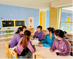 4月19日下午1:30,幼儿园张晶、肖芳助理带领5名教师,在理工附校与7名教师展开了联合教研活动。于冬霞主任主持此次活动。