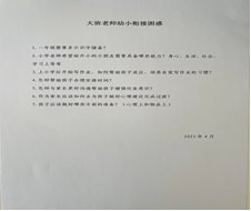 联合教研前,幼儿园大班教师在教研组长薛寰宇的带领下,将班级在幼小衔接工作中发现的问题、困惑进行逐条梳理,形成问题清单。